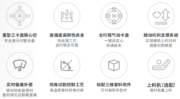 4. 切割軟件支持工件模式和浮動模式,加工數據統計,加工中可實現實時尋中糾偏補償,管面輪廓修正、管拐角工藝、快速蛙跳等。