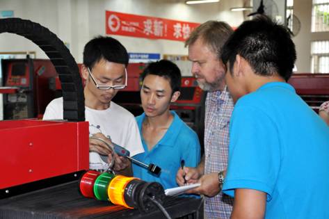 2012年7月17日,武漢華俄激光工程有限公司的俄羅斯技術專家西里切夫·奧列格·奧列格維奇、尤里·帕夫洛維奇·康斯坦丁諾夫、阿列克謝·瓦西里耶維奇·塔拉索夫一行經過近十多小時的長途飛行終于到達火爐之城——武漢。專家此行的主要目的是對公司的主打產品——固體激光切割機的細節流程進行技術指導,以此來提高產品切割工藝,讓華俄產品的品牌效應更加突出。專家到達公司后就直接下生產線,對生產過程以及調試檢驗過程中存在的技術問題、工藝問題一一進行了講解、舉例、示范。我司技術人員也針對平時工作中存在的技術疑問虛心向專家求解、專家耐心解答,經過這次交流,我司技術人員都一致深感這些細節的改進必將更加有利于提高華俄激光切割機的整機運行速度、保證設備的穩定運行。