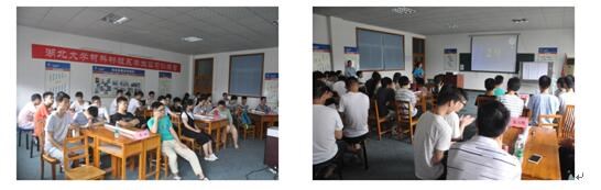 四天的實訓,每天精彩紛呈。在專業講學之前,華俄人力資源周漢麗以簡短有力、鼓舞士氣的開場白和有趣的小游戲瞬間帶動了整個課堂的氣氛。本次理論講學,華俄研發部田承新經理、倉儲部主管劉志兵、生產部電裝組長方勇等各部門代表作為講師,給學生們傳授專業的理論知識并現場指導教學?;哟鹨森h節,令人驚喜的是學生竟在短短的學習時間里,提出了一個又一個深刻的問題,講師們都耐心全面的一一解答了。
