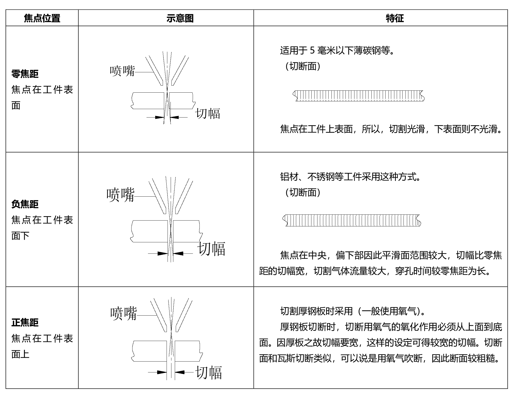 焦點位置與切割面的關系