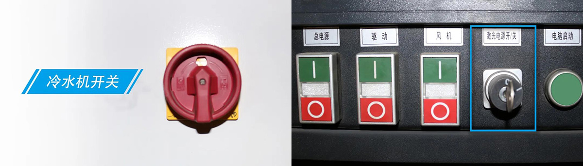 2、啟動(dòng)配套的冷水機(jī),等待水溫調(diào)整到預(yù)定溫度,開啟激光使能開關(guān);